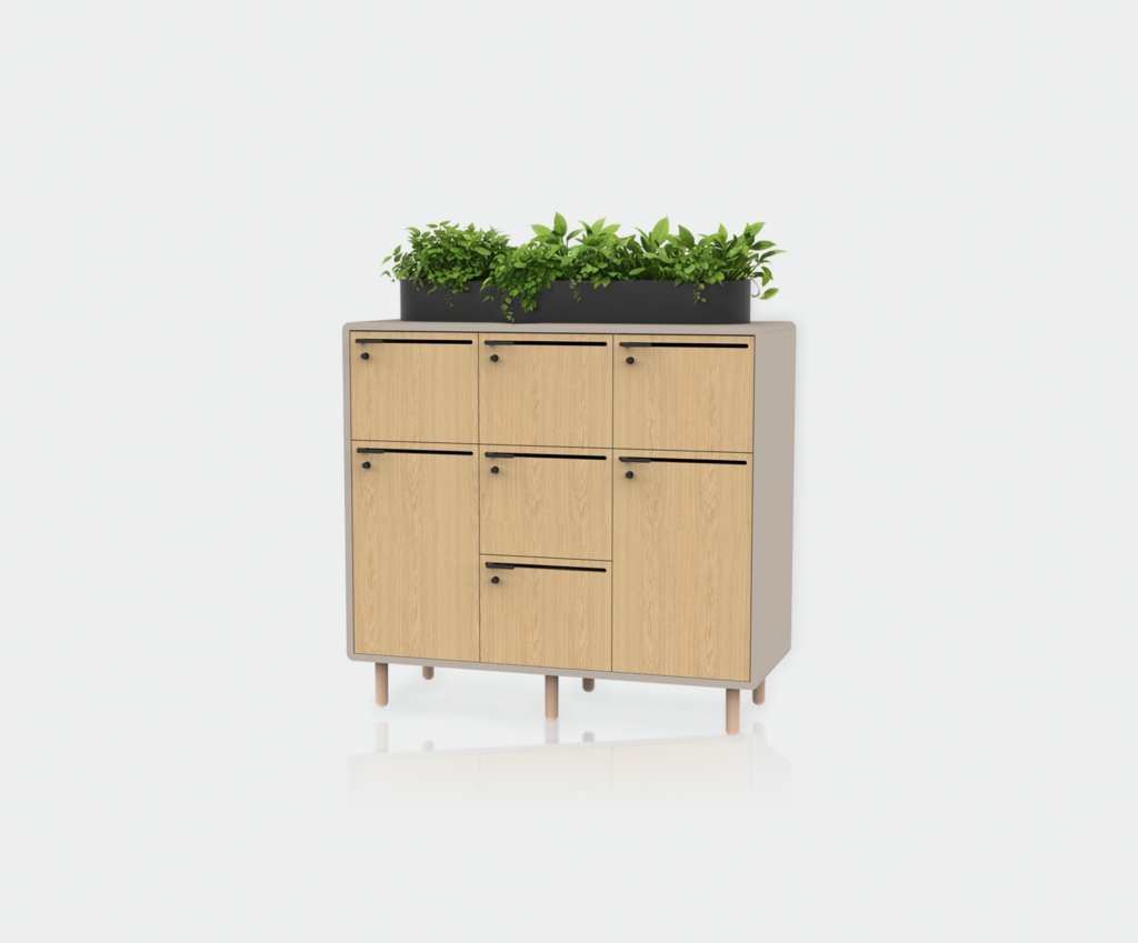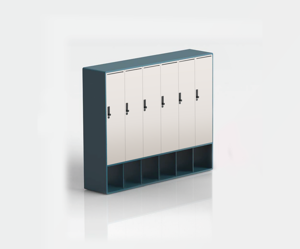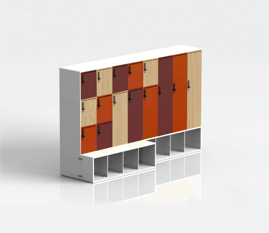 This configuration supports unassigned workplace models by providing each employee with a dedicated storage home base. Designed to balance density and flexibility, it accommodates a range of locker capacities while supporting both daily and longer-term use. The system prioritizes efficient space utilization, personalization where needed, and seamless integration along a wall—adapting as workplace behaviors and commuting patterns evolve.