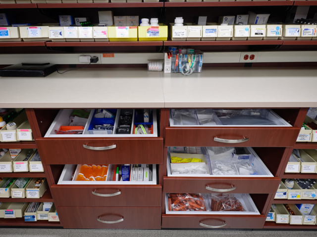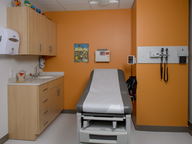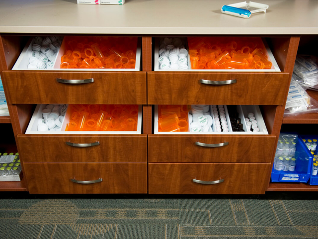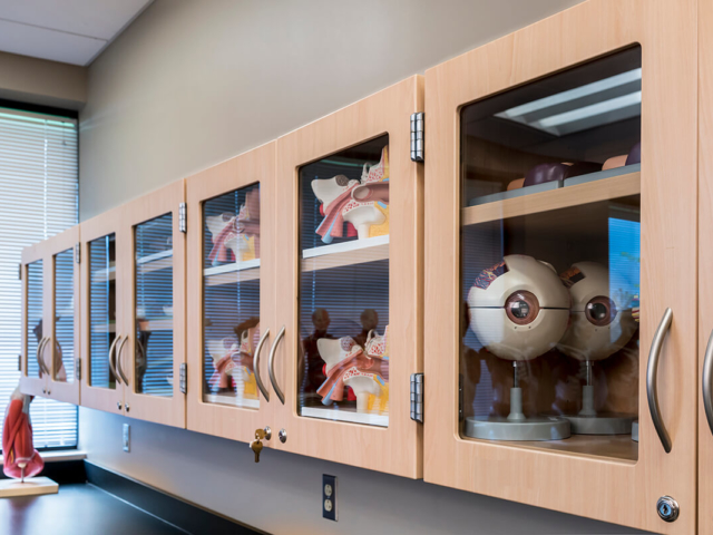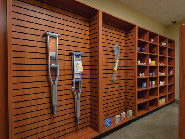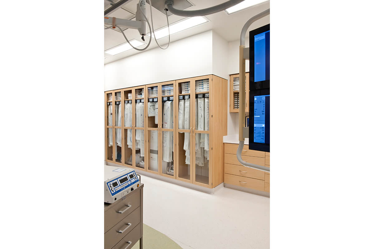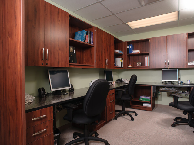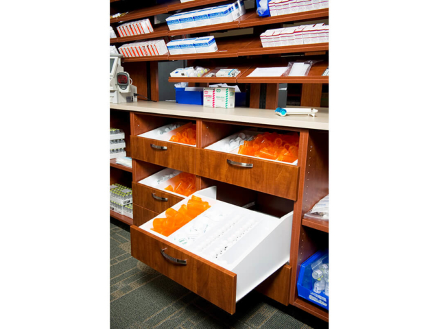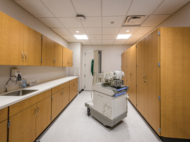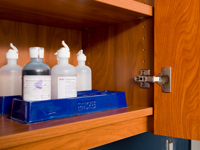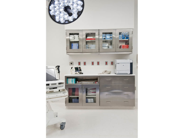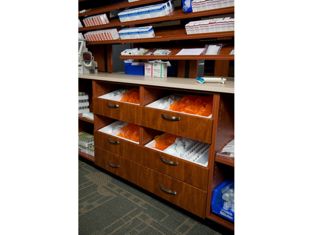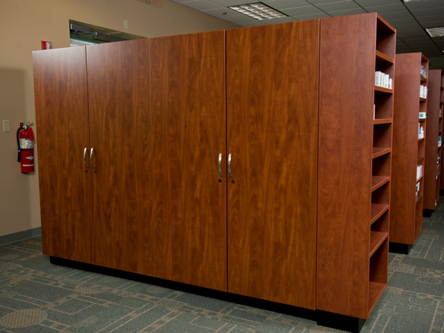 Pine Laminate Base Cabinets in exam room - Healthcare Casework