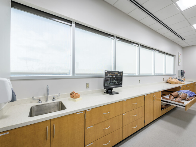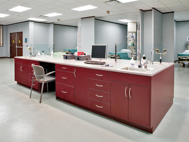 Pine laminate Base Cabinets with sink - Patient Room Casework
