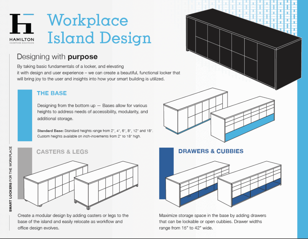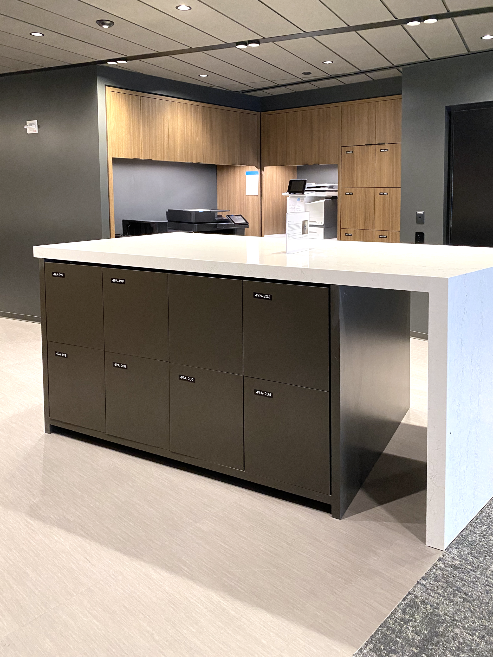 HAMILTON’s locker islands adapt to your storage patterns while maintaining workspace flow.