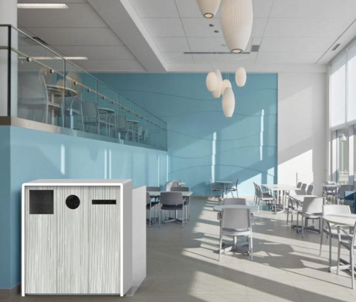 HAMILTON’s waste stations handle the reality of shared workspaces without the mess. We integrate trash and recycling into your existing layout—locker islands, end caps, zone dividers—so disposal is convenient, hidden, and actually used by your team.